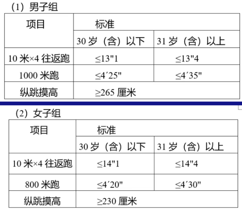备注:年龄计算时间截止到参加体能测试当月。