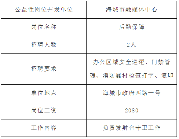 根据鞍人社发【2024】20号文件关于修订《鞍山市公益性岗位管理办法》的通知有关规定,结合用人单位岗位开发情况,经海城市公益性岗位开发审核领导小组审核同意,海城市融媒体中心拟聘用公益性岗位人员共计2人,具体事宜如下:
