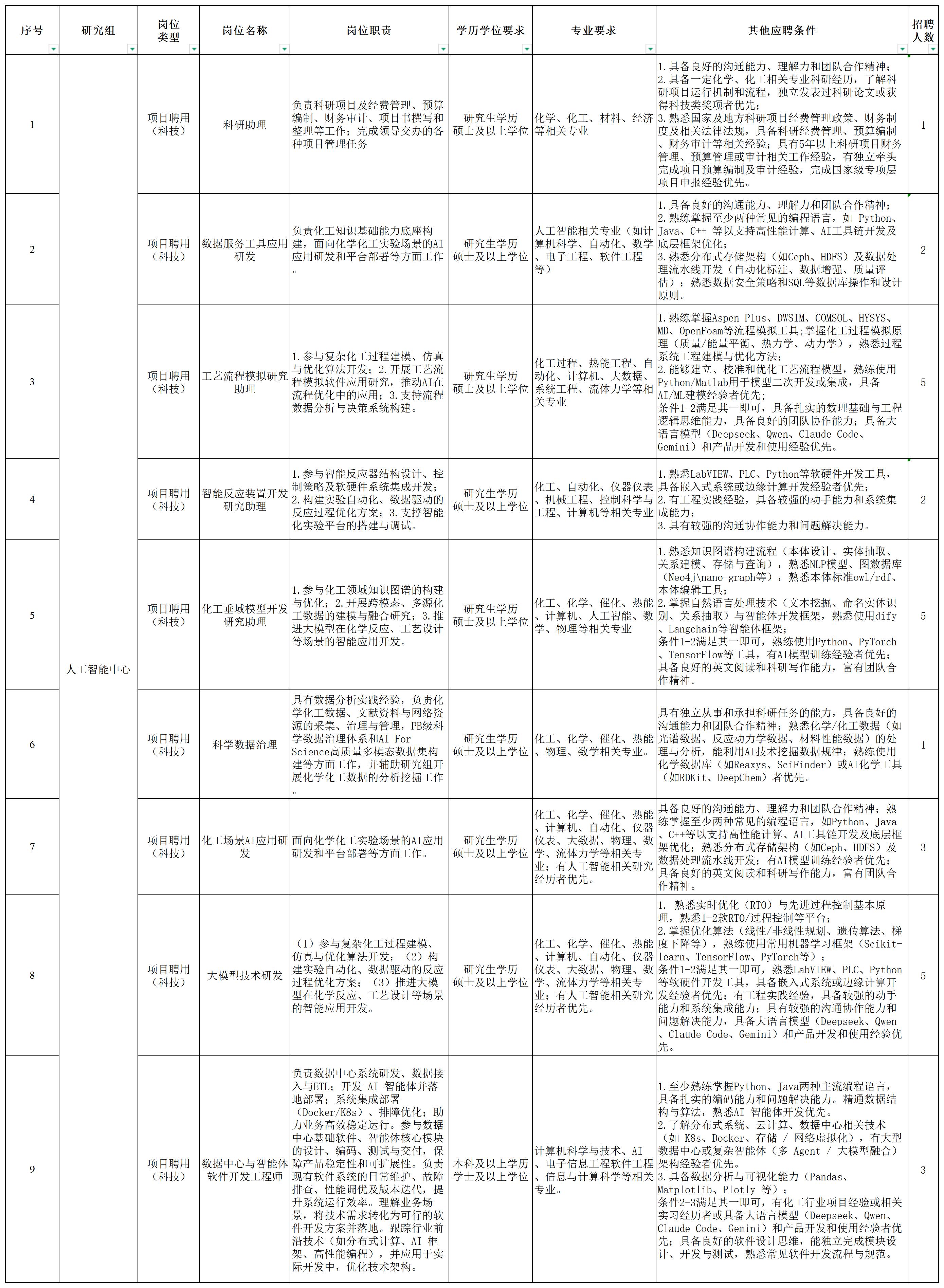 人工智能中心事业编制外项目聘用人员招聘启事附件